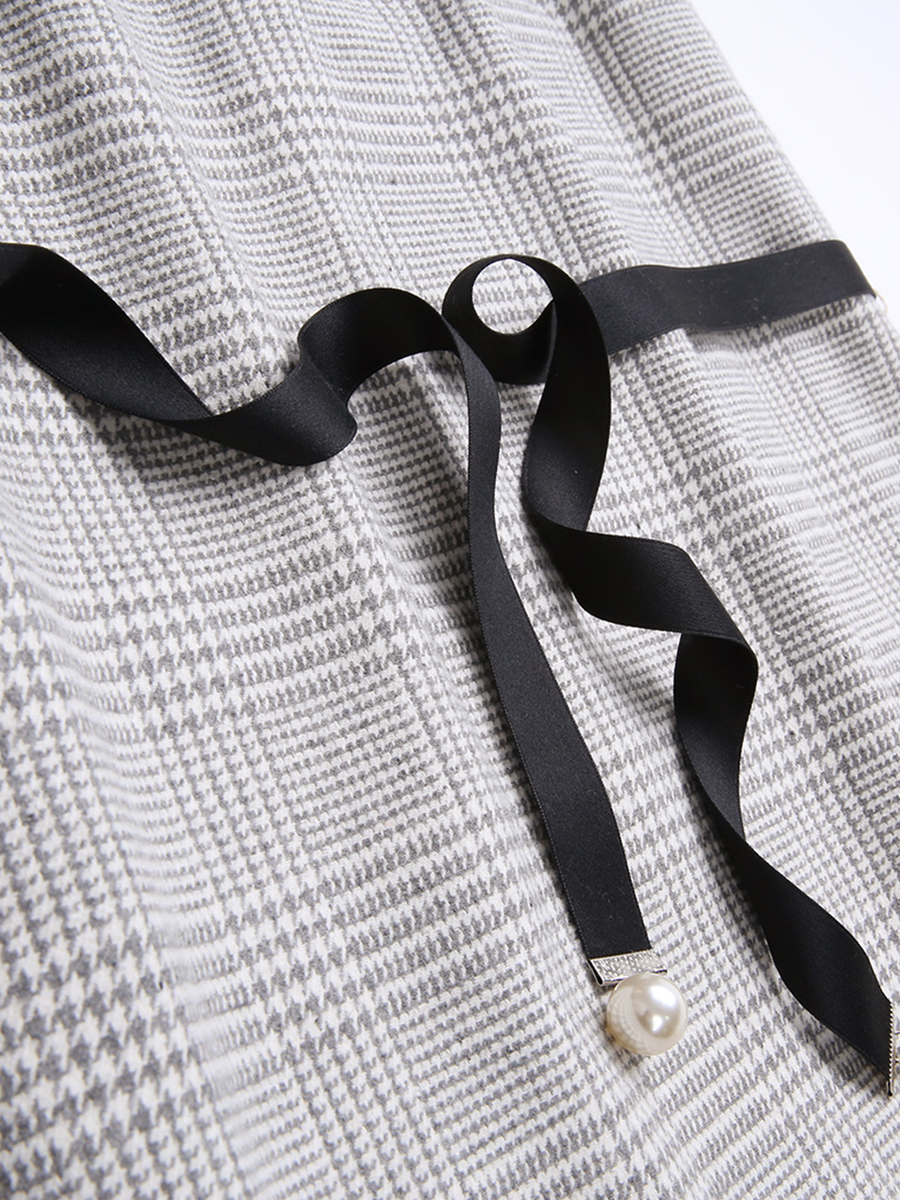 MG小象chic毛針織衫女秋冬新款格子背帶連衣裙小清新喇叭袖上衣潮