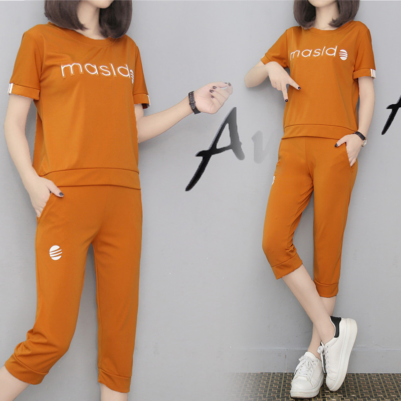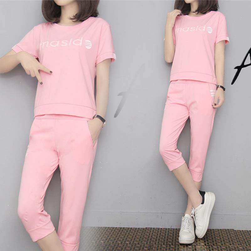 2017夏季休閑運動套裝大碼女時尚短袖T恤七分褲百搭學生兩件套潮