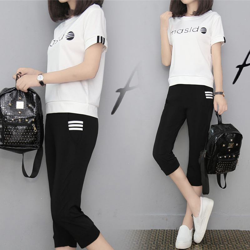 / 2017夏季休閑運動套裝大碼女時尚短袖T恤七分褲百搭學生兩件套潮