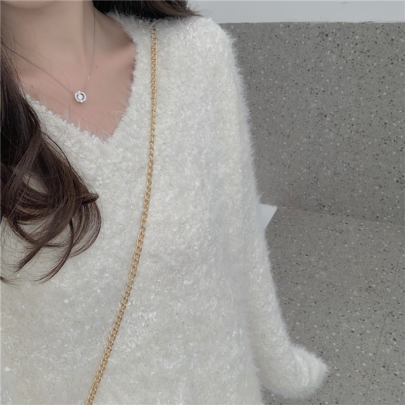 慵懶風套頭毛衣女2018新款秋冬韓版簡約海馬毛圓領長袖針織毛衣潮