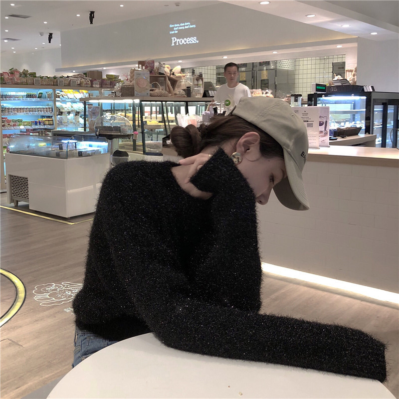 / 時尚百搭閃閃毛毛套頭加厚寬松顯瘦韓版上衣網紅毛衣女2018新款潮