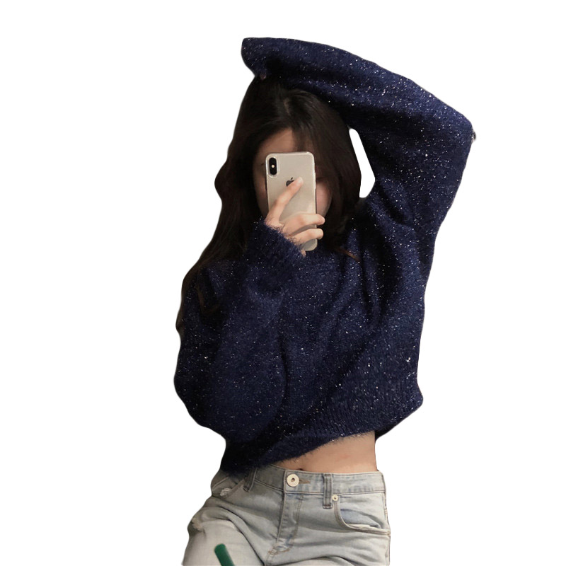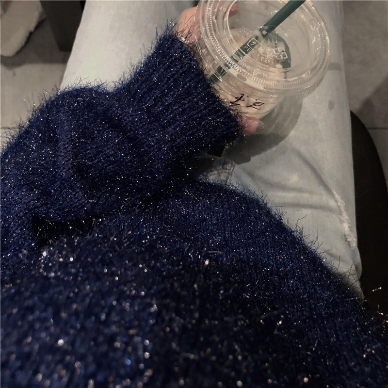時尚百搭閃閃毛毛套頭加厚寬松顯瘦韓版上衣網紅毛衣女2018新款潮