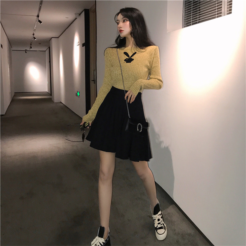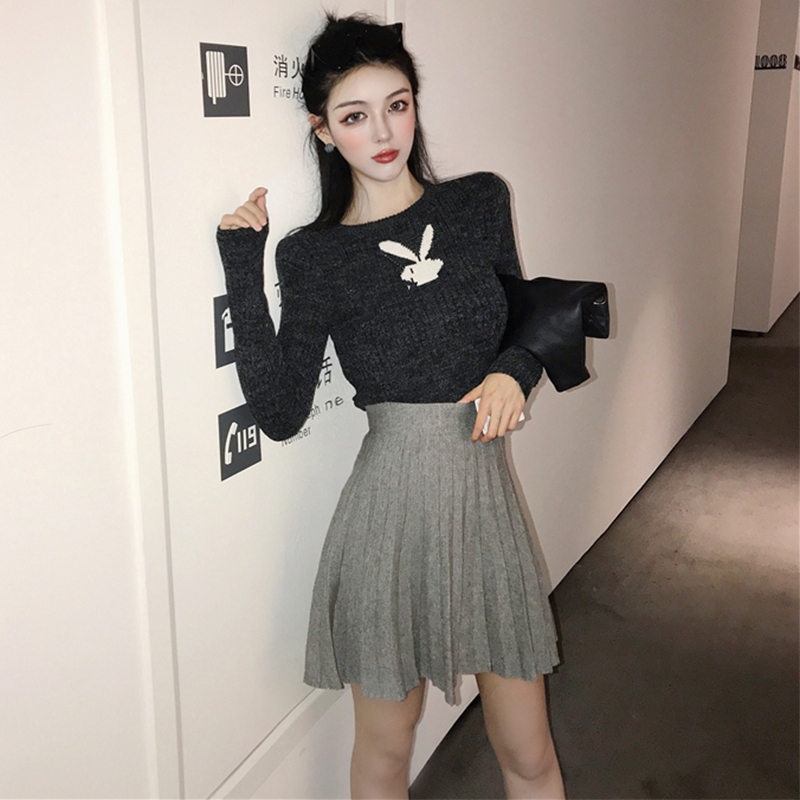 / 洋氣套裝女秋冬2018新款修身長袖打底毛衣高腰顯瘦百褶針織半身裙