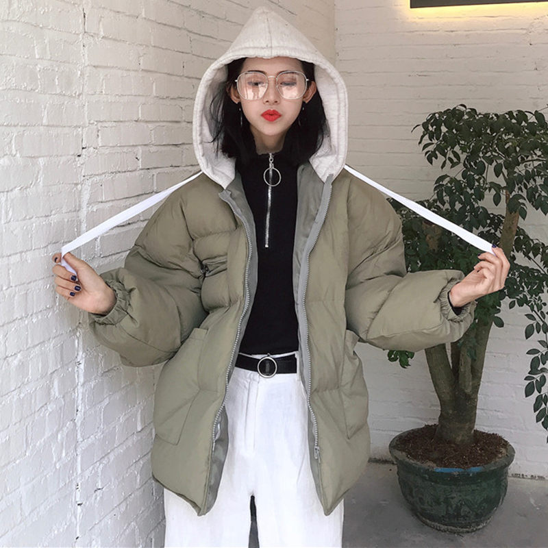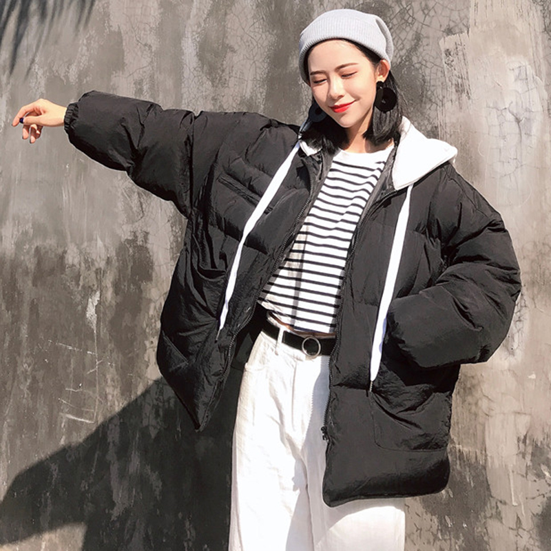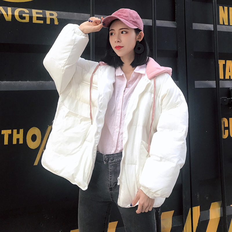 寬松加厚棉襖女2018冬裝新款學生時尚白色面包服休閑連帽棉衣外套