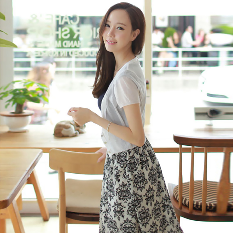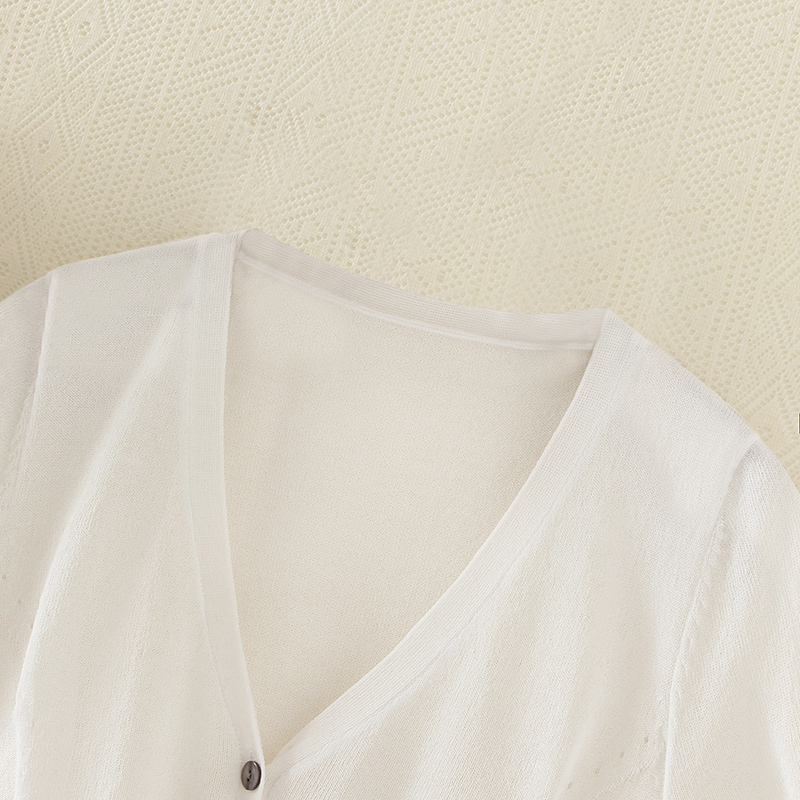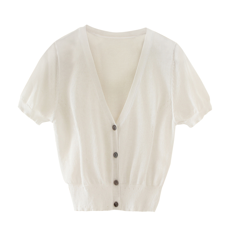 / 短袖開衫女夏薄短款外搭v領純色披肩外套針織衫女開衫薄款空調衫
