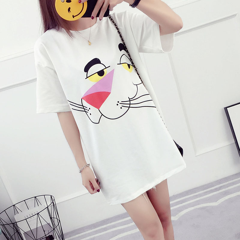 韓版百搭學生中長款短袖t恤女夏季寬松打底衫卡通學院風夏裝