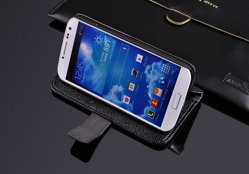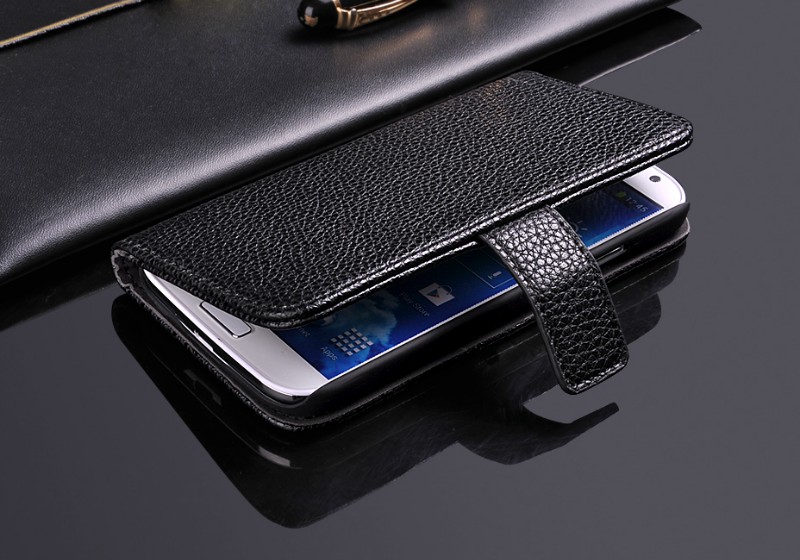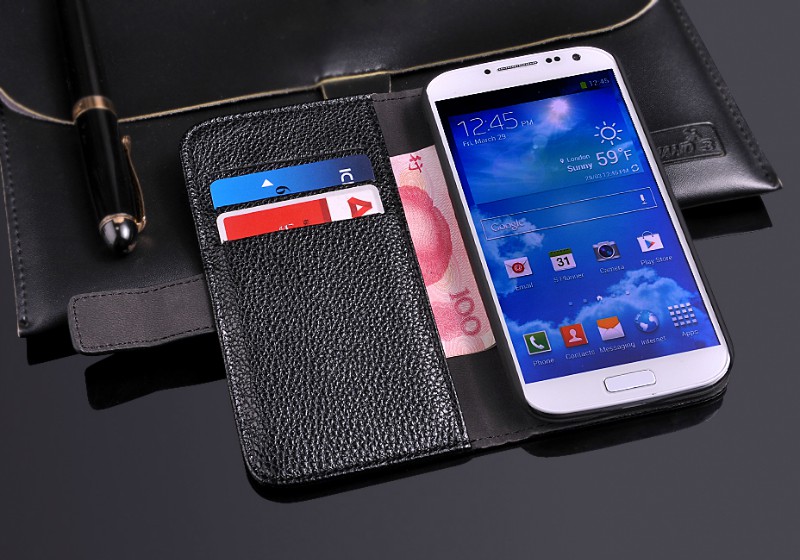 三星i9500荔枝紋皮套 保護套Galaxy S4 支架插卡左右開翻手機套殼