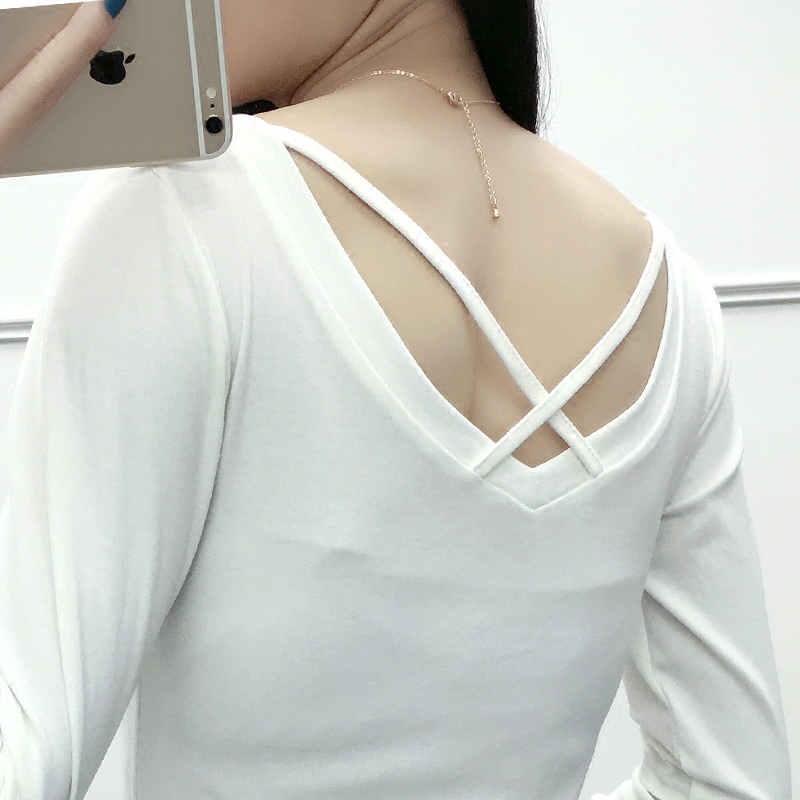 秋裝棉v領百搭長袖T恤女打底衫外穿大碼顯瘦女裝上衣潮