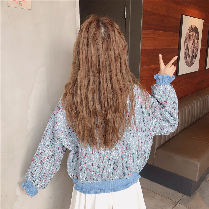 / 氣質木耳邊拼接燈籠袖衛衣女秋冬裝2018新款寬松套頭粗花毛呢外套