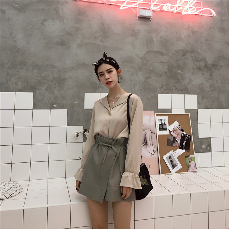 杏色襯衫|淺綠色襯衫|灰色裙M|黑色裙M|灰色裙S|黑色裙S