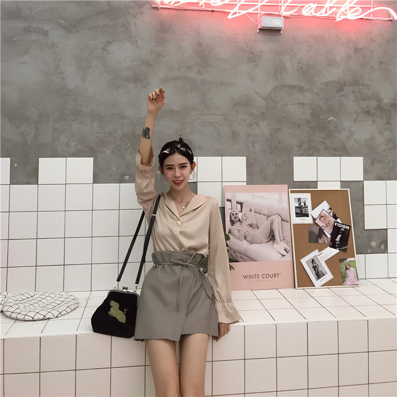 / 韓版時尚套裝女夏2018新款氣質百搭襯衣+修身顯瘦皮短裙分開拍潮