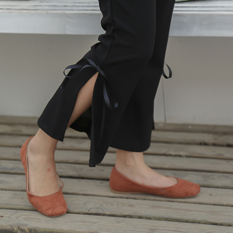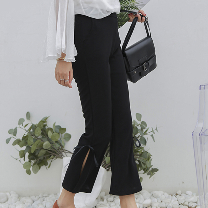 / 春夏新款女裝高腰修身顯瘦系帶側開叉微喇學生百搭九分休閑褲女