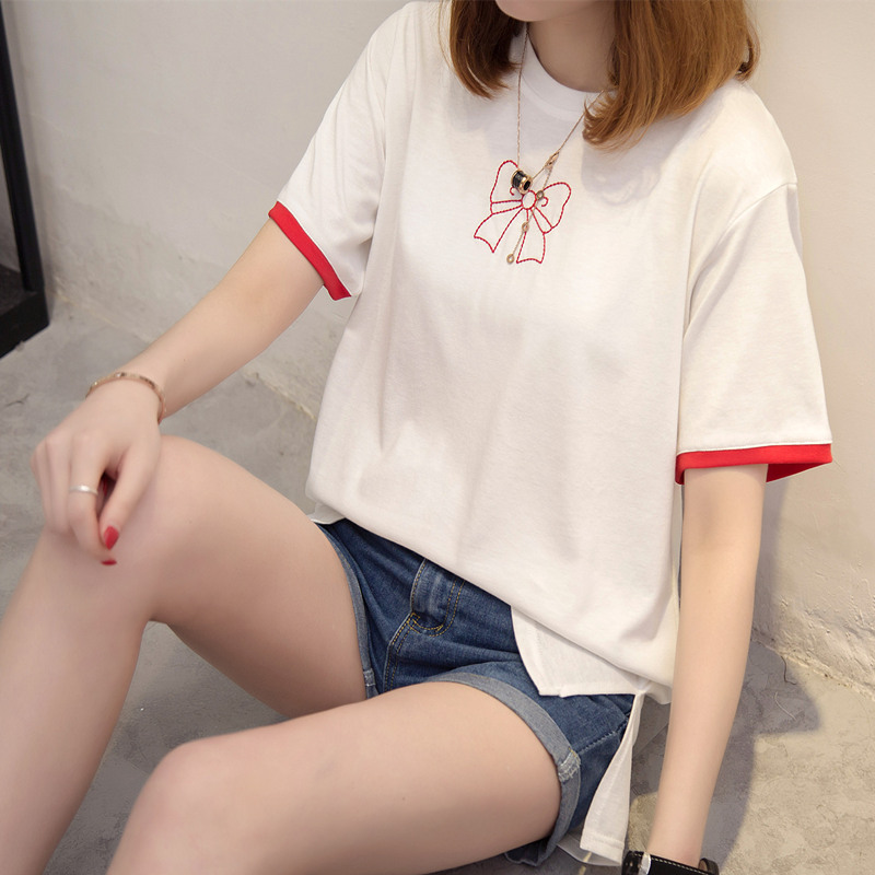 短袖t恤女新款韓版寬松百搭學生白色t恤純色上衣女夏體恤衫潮