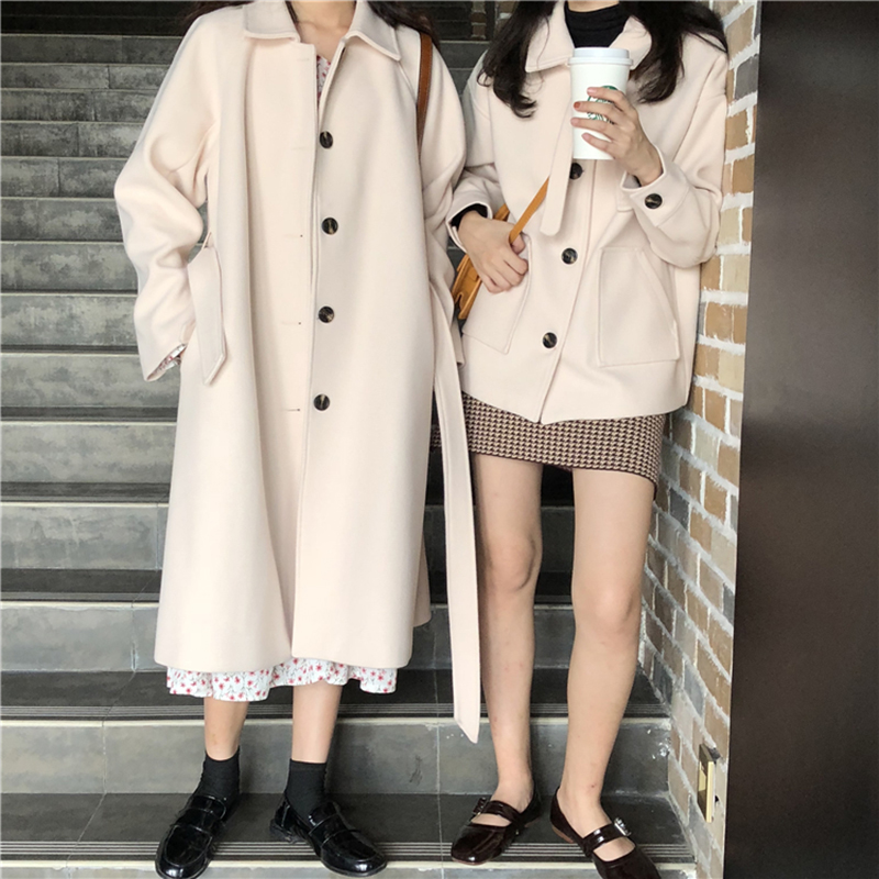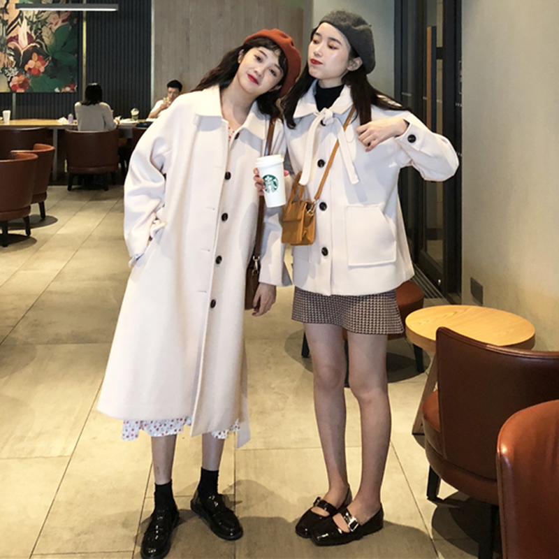 / 2018流行毛呢外套女秋冬新款赫本大衣閨蜜裝學生休閑長袖開衫上衣