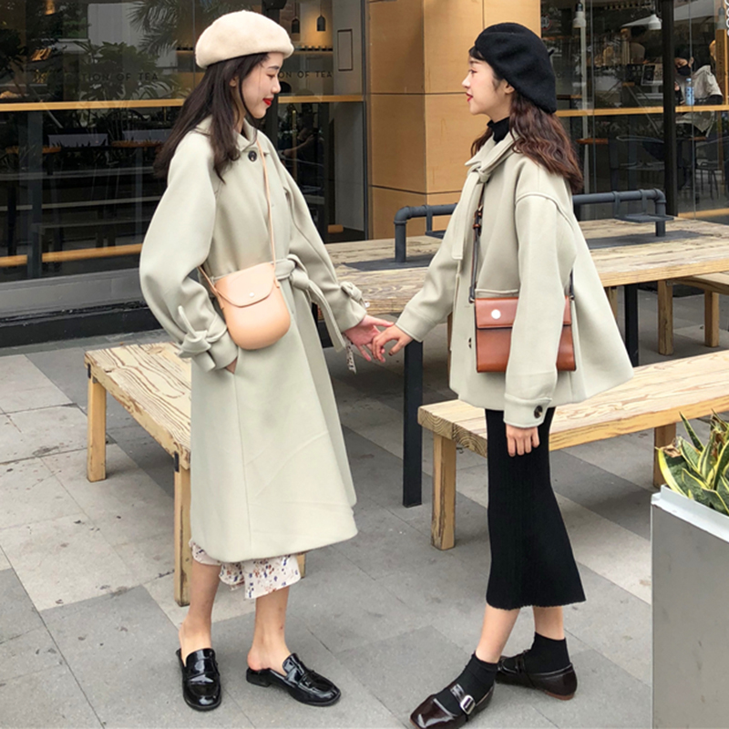 2018流行毛呢外套女秋冬新款赫本大衣閨蜜裝學生休閑長袖開衫上衣