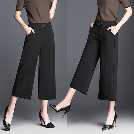 / 闊腿褲女高腰九分褲春夏新款韓版寬松褲子直筒夏季學生七分休閑褲