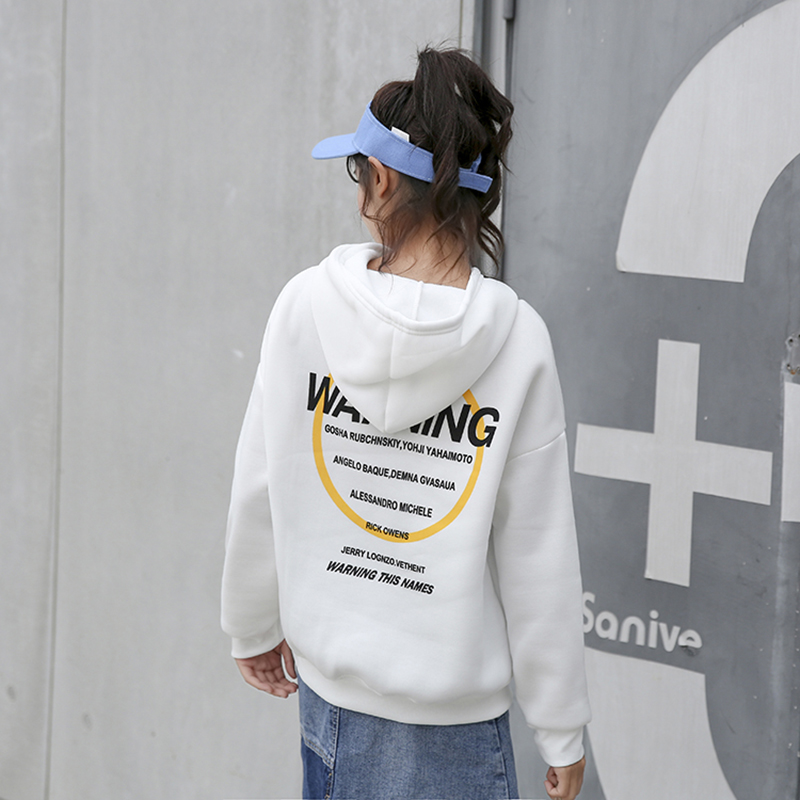 學院風后背字母印花加絨衛衣女秋冬裝2018新款韓版寬松連帽外套潮