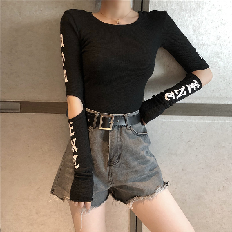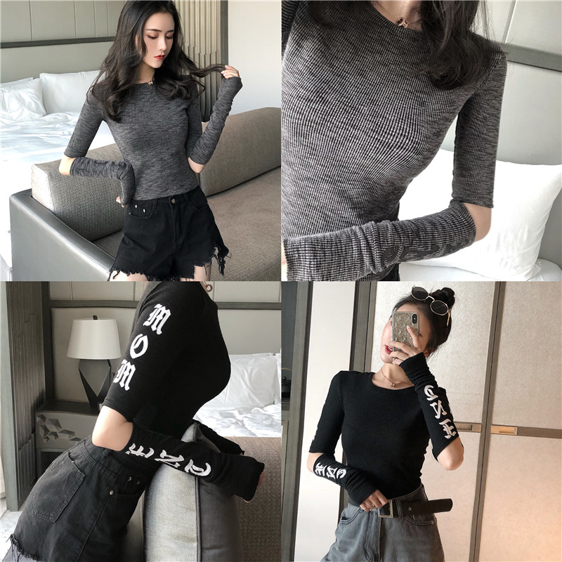 2018秋季新款韓版女長袖百搭修身顯瘦打底衫時尚斷袖chic港味上衣