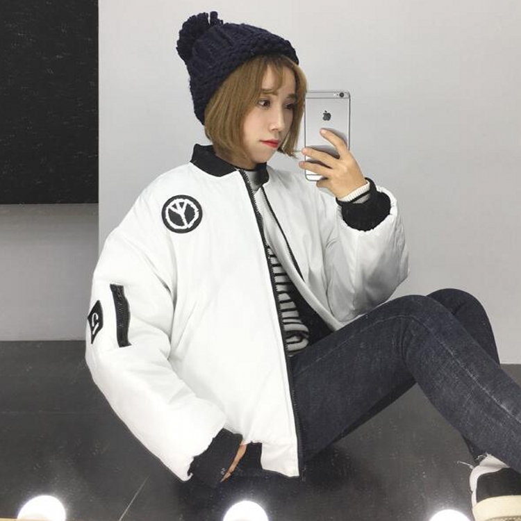 / 韓國原宿風冬款寬松印花短款加厚保暖棒球棉衣棉服外套女學生