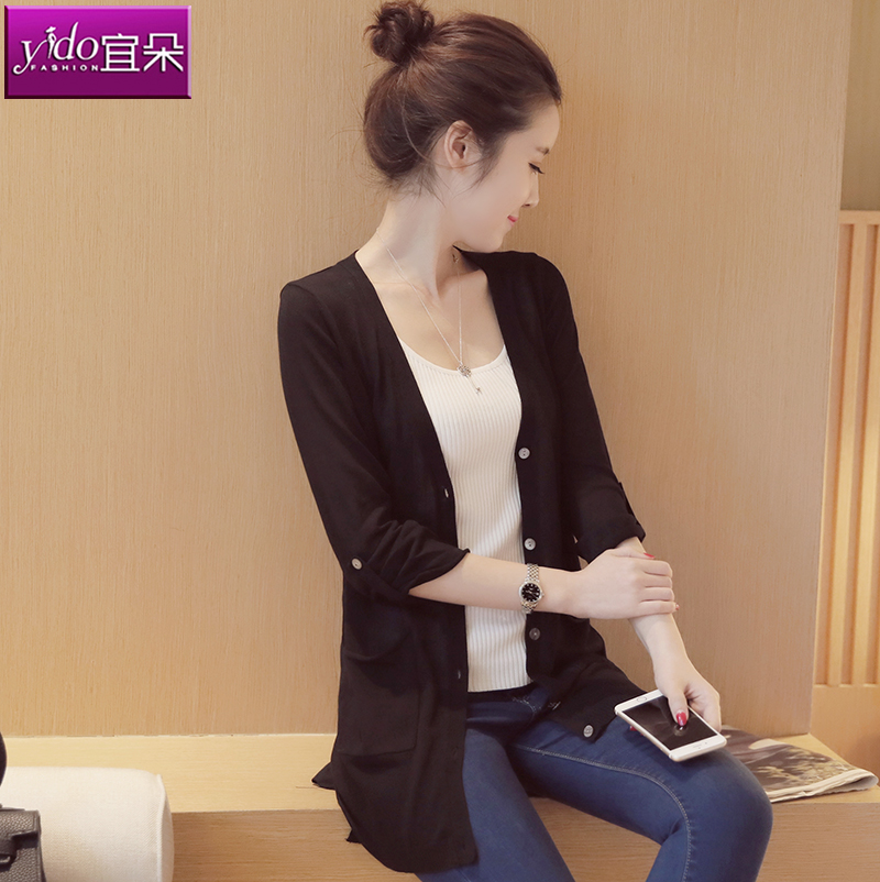 / 中長款針織衫女開衫薄外搭春季中袖針織空調衫女開衫防曬衫薄