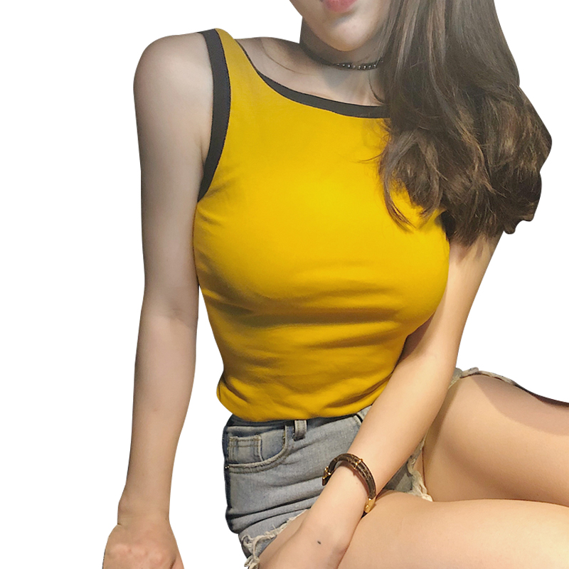 韓范美背吊帶背心女小性感外穿撞色純色修身顯瘦無袖打底百搭上衣
