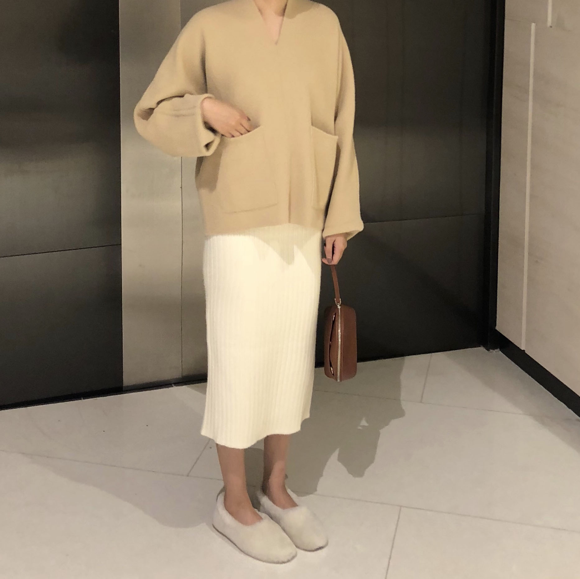 / 韓版鹿皮絨慵懶百搭套頭上衣+杏色開叉半身裙長裙時尚兩件套
