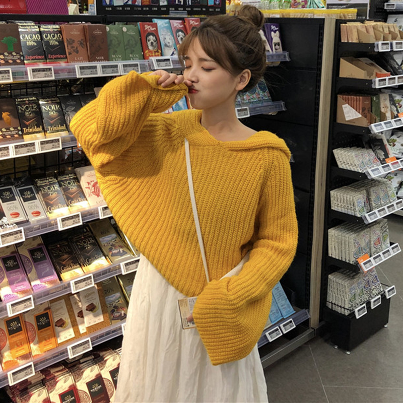 / 2018新款學生V領蝙蝠長袖上衣女韓版寬松短款針織衫粉色連帽毛衣