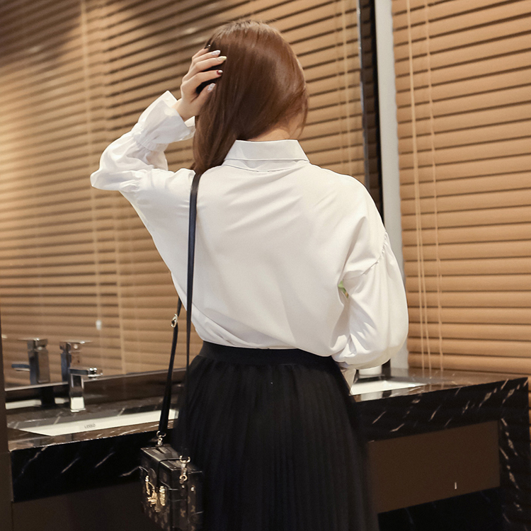 2017秋裝新款學院風泡泡袖長袖白襯衫女學生休閑百搭清新襯衣寸衣