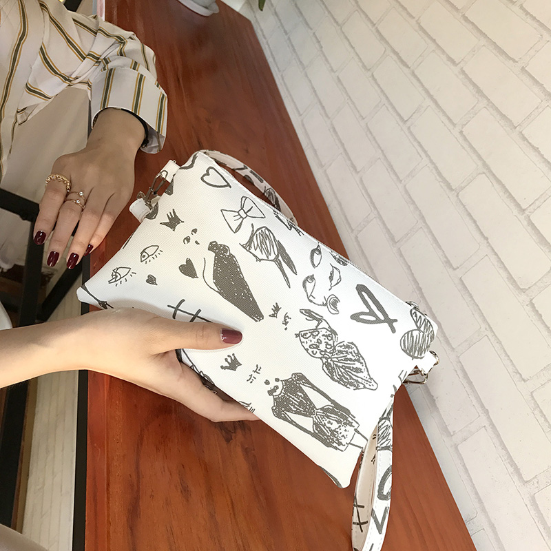 17夏新款女大容量手拿包手繪涂鴉手抓包韓版印花手機小包錢包潮