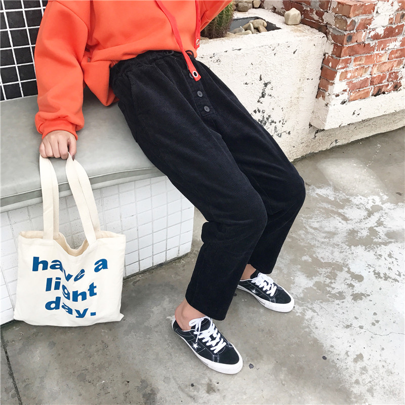 / 秋冬韓版松緊腰燈芯絨褲子高腰寬松哈倫褲休閑褲直筒褲長褲學生女