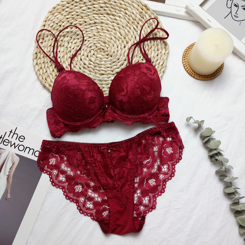 韓版秋季女裝性感蕾絲無鋼圈聚攏三角杯內衣學生文胸內褲時尚套裝