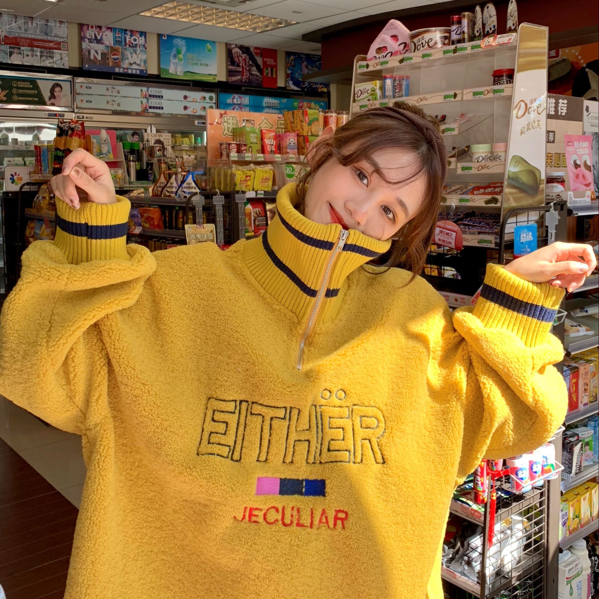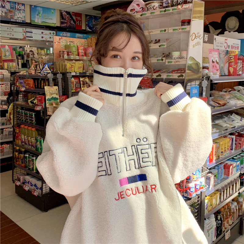 / 寬松顯瘦羊羔毛加厚保暖套頭衛衣女2018新款復古韓版高領字母絨衫