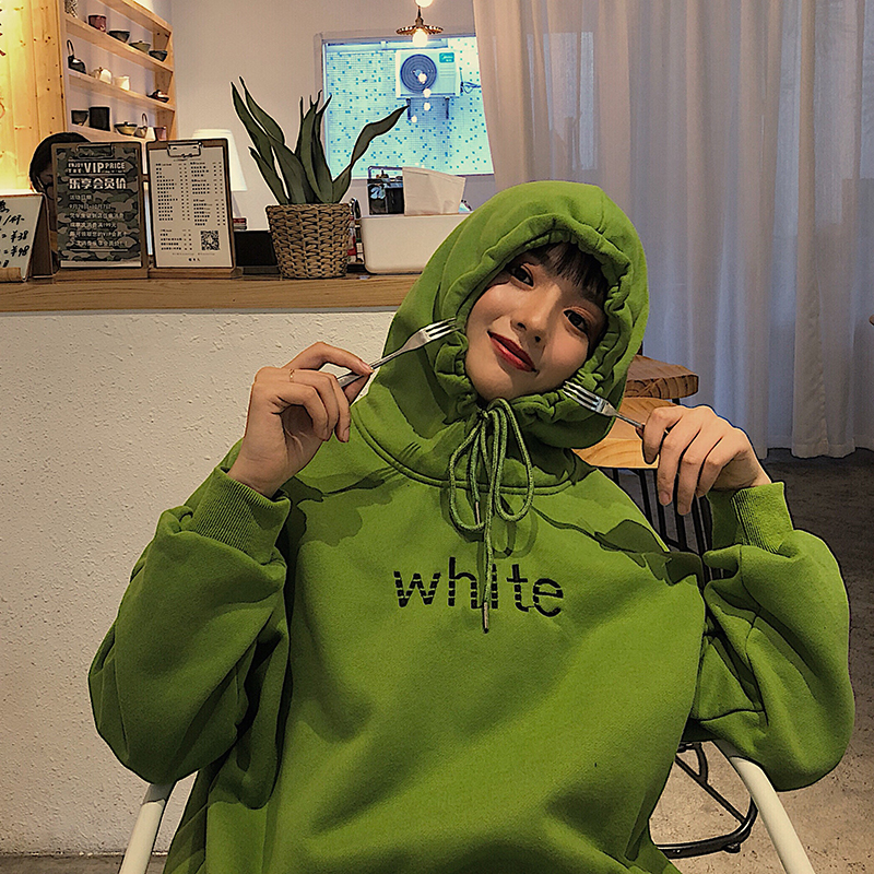 秋冬新款韓版女裝慵懶寬松加絨字母套頭衛衣女2018新款抽繩連帽衫