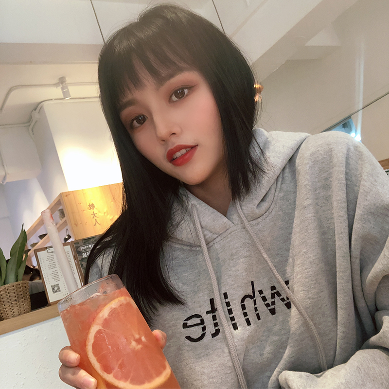 韓版chic早秋上衣慵懶衛衣女秋短款字母連帽加絨衛衣外套加厚帽衫
