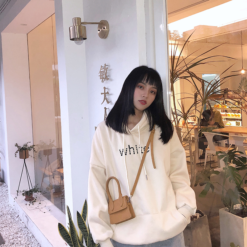 / 秋冬新款韓版女裝慵懶寬松加絨字母套頭衛衣女2018新款抽繩連帽衫