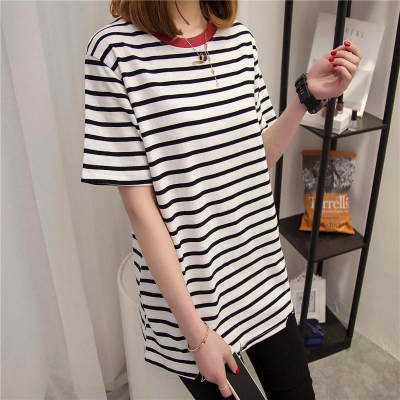 打底衫女上衣條紋短袖t恤女寬松體恤韓版學生春季時尚新款潮