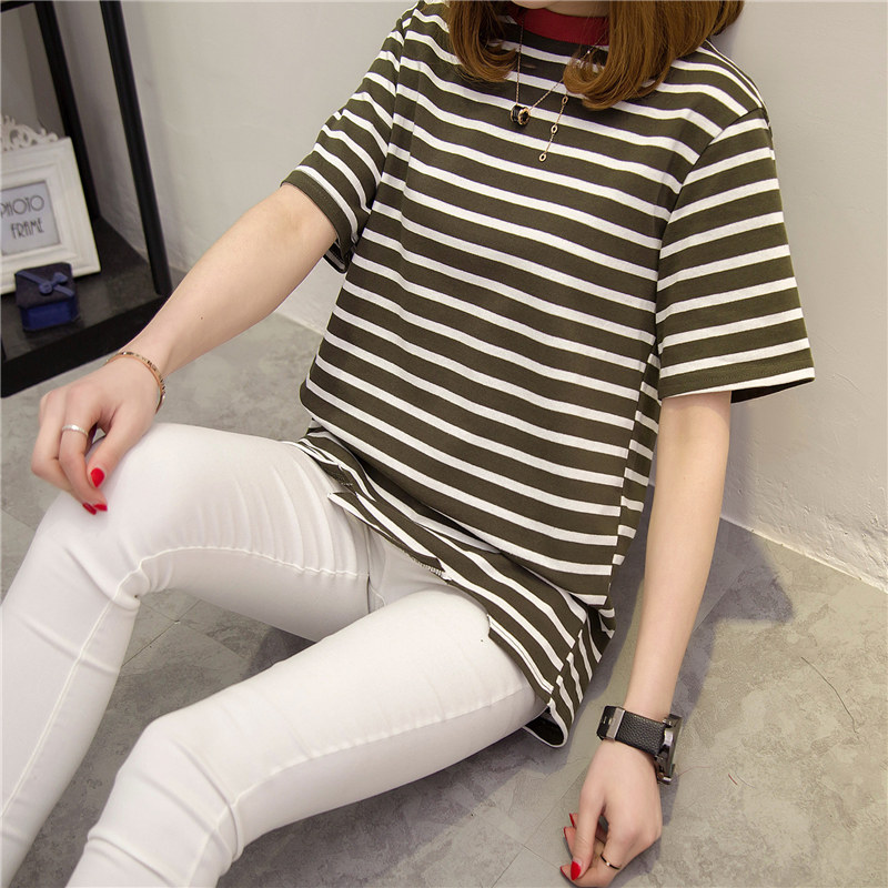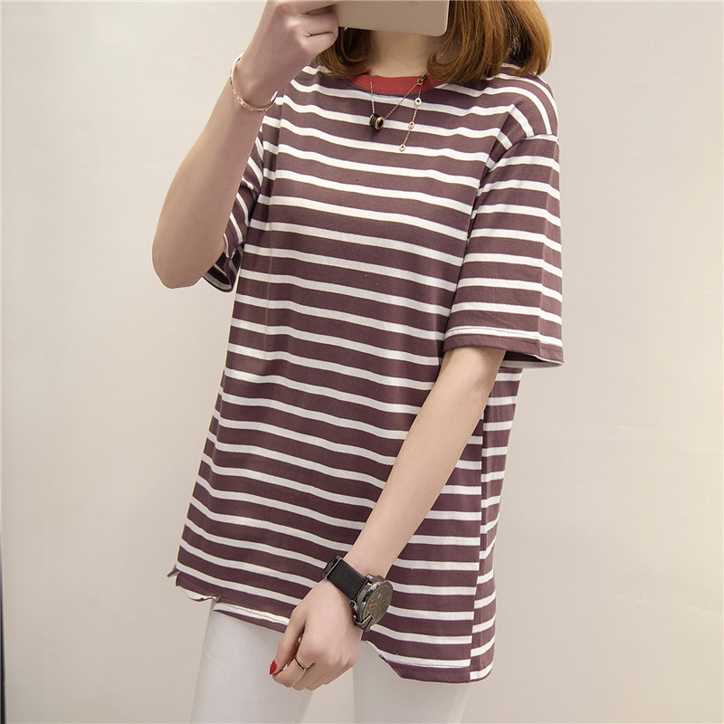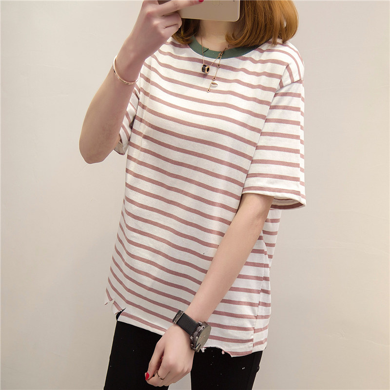 / 打底衫女上衣條紋短袖t恤女寬松體恤韓版學生春季時尚新款潮