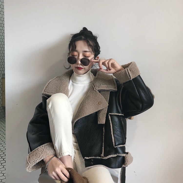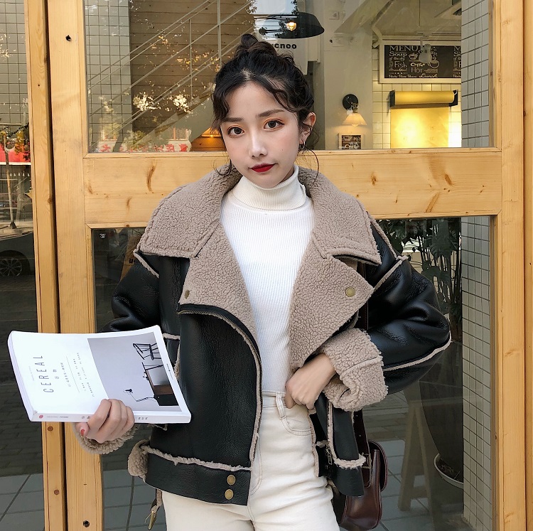 / 港風外套女冬裝2018新款百搭寬松百搭羊羔毛內膽皮棉服棉衣女上衣