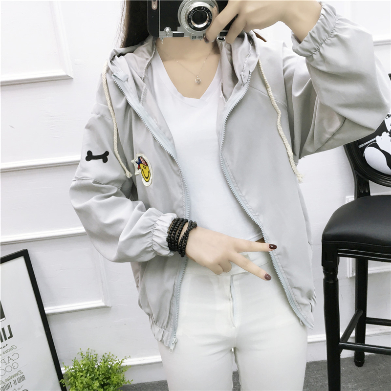 春裝韓國原宿ulzzang寬松bf風字母刺繡連帽棒球服學生外套女上衣