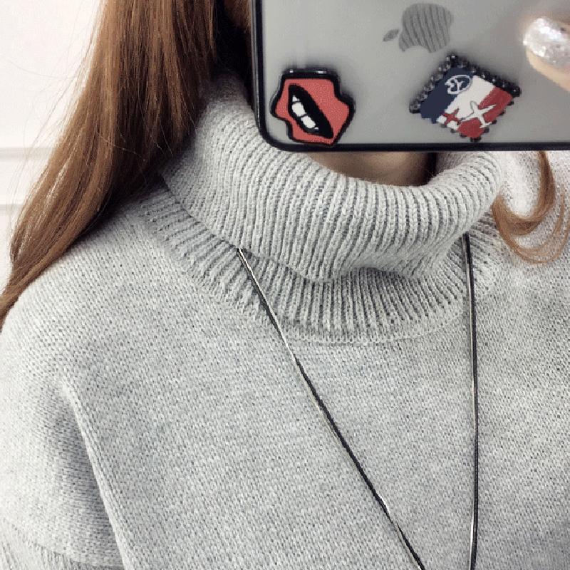 毛衣外套女秋冬裝2018新款韓版學生寬松百搭顯瘦高領長袖針織衫潮