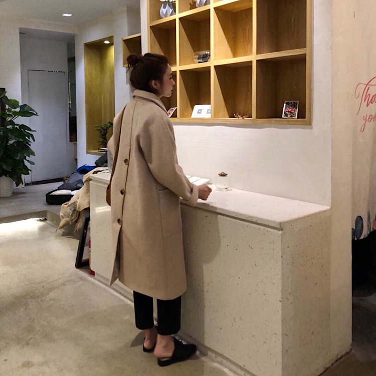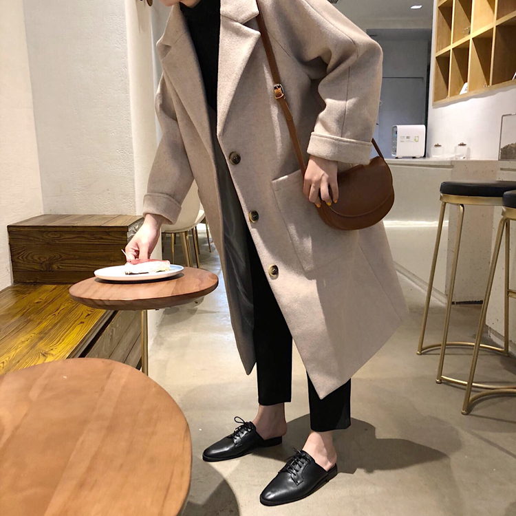 復古溫柔慵懶風隨意暖色系百搭寬松中長款毛呢外套女韓版呢子大衣