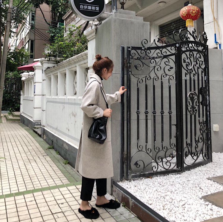 / 毛呢外套女冬季大衣女新款2018寬松韓版后背開叉外套保暖呢子上衣