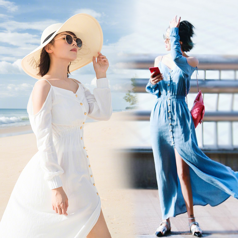 / 新款潮韓版仙女長裙歡樂頌劉濤同款chic裙子夏季吊帶連衣裙女