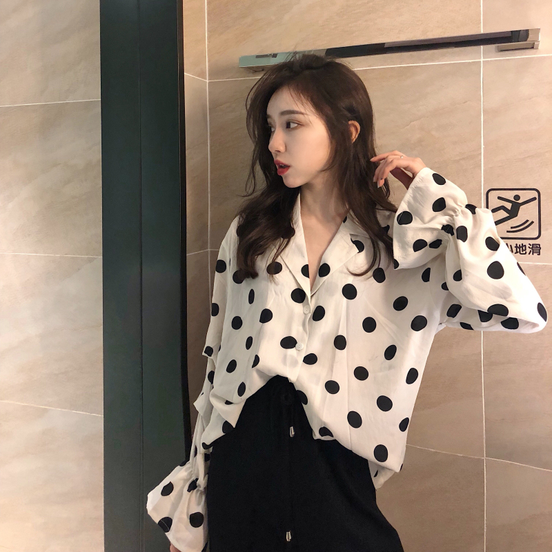 / 秋季新款雪紡長袖百搭襯衫顯瘦打底衫高腰休閑針織長褲時尚套裝女
