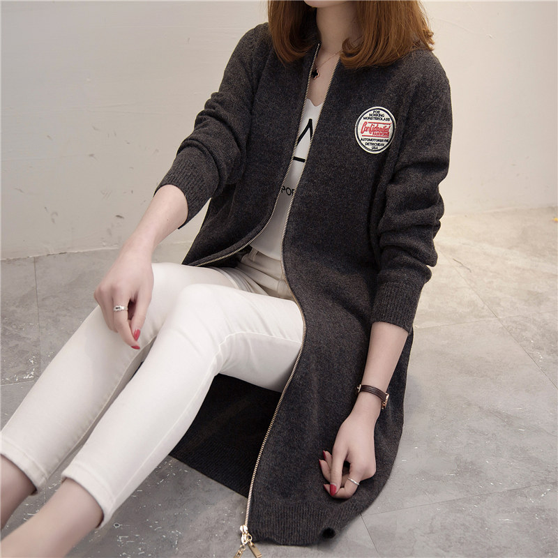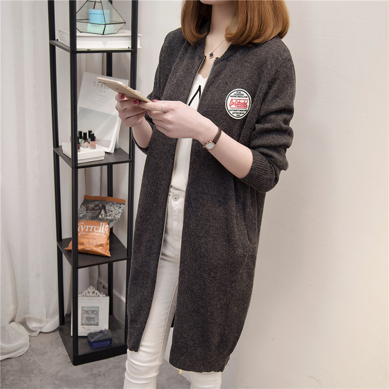 / 女裝韓版寬松中長款毛衣外套女學生針織衫開衫春裝棒球服新款