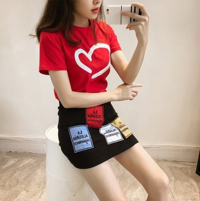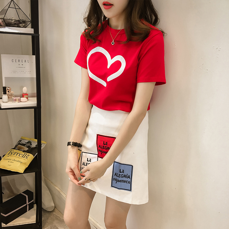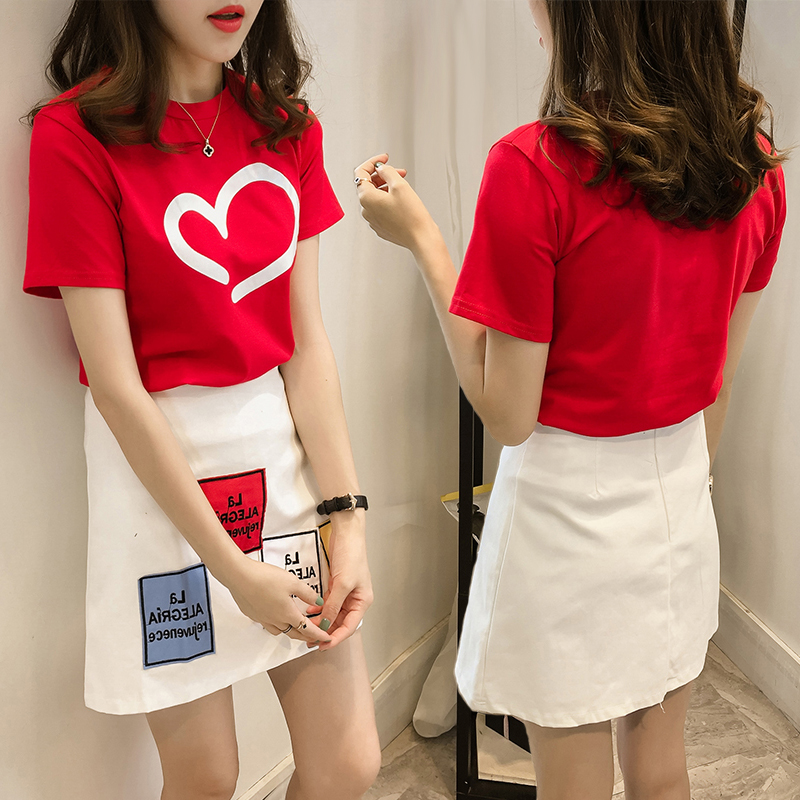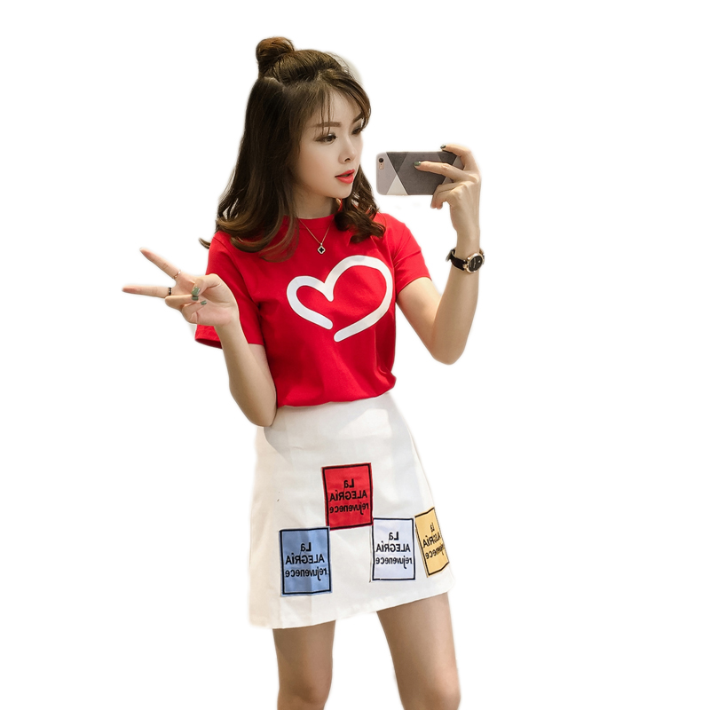 / 夏季新款氣質連衣裙女寬松圓領短袖上衣潮+半身短裙兩件套裝