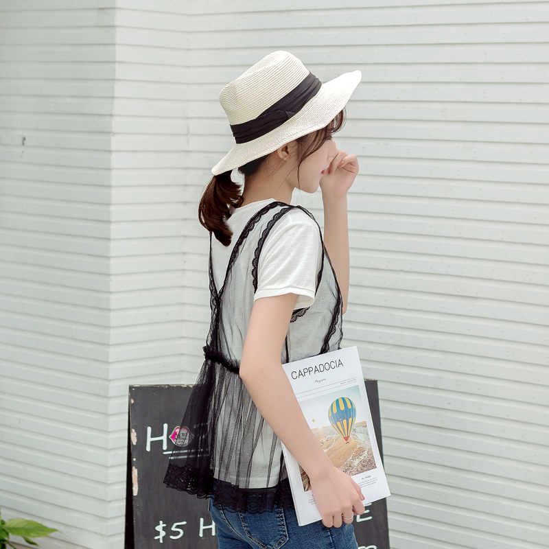 網紗背心,下擺是甜美的花邊下擺