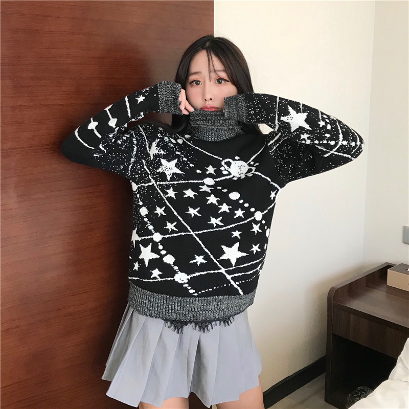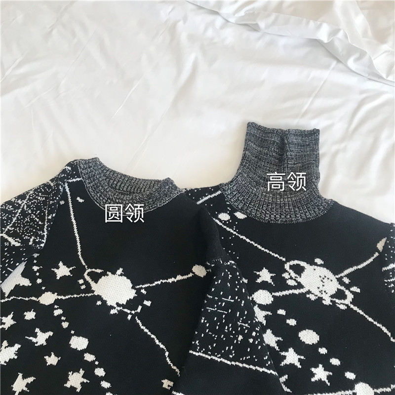 冬季新款韓版寬松宇宙星球針織衫情侶裝加厚套頭毛衣