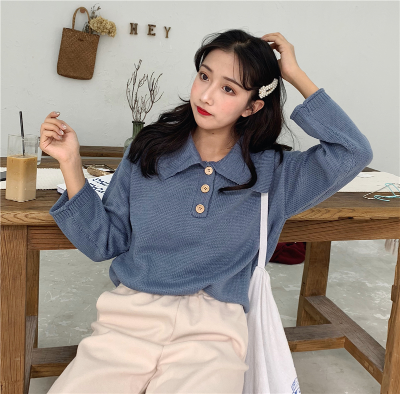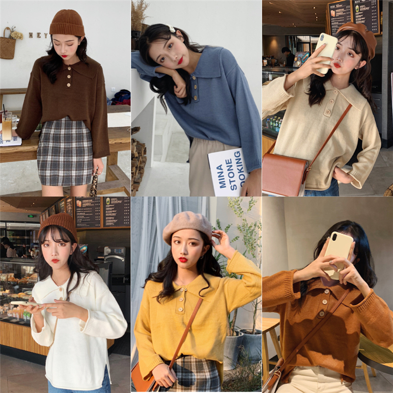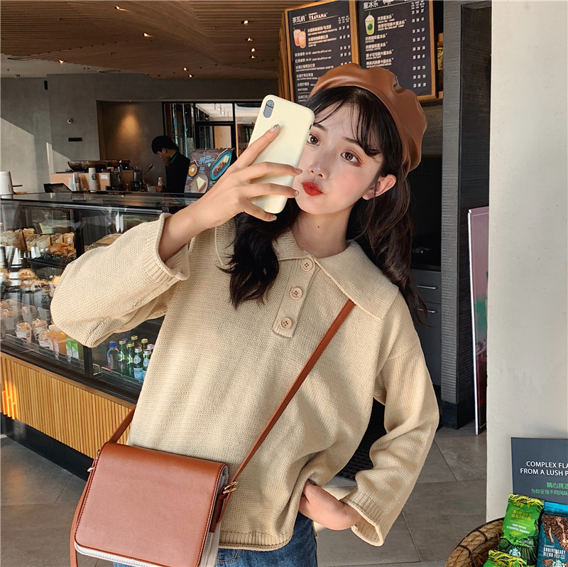 可可里小姐~寬松毛衣上衣學生長袖套頭針織衫女秋冬新款
