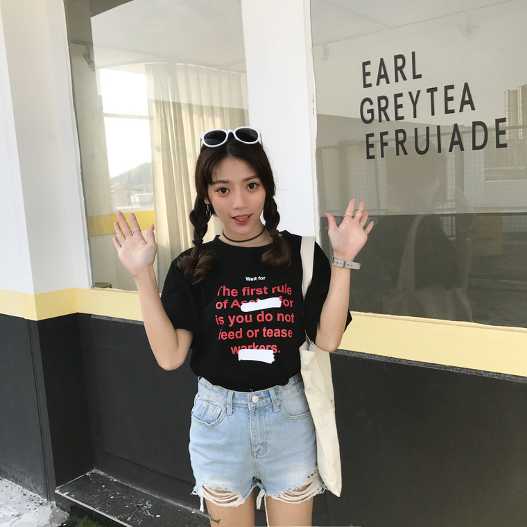 2017新款韓版情侶裝夏裝字母印花情侶t恤女寬松短袖學生打底上衣